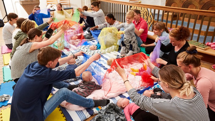 Læs mere om babysalmesang på fredens-kirke.dk/born-og-familier/babysalmesang.